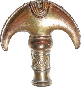 Costa Rica also contains some interesting mushroom artifacts. A basalt stone monkey deity, c. 8000-1200 AD, has mushrooms stacked on his head (81h). A vase which has a bulbous top, with striations all around the base, when turned upside down reveals the more obvious mushroom symbolism (79e).![]() ![]() (81h) Basalt stone. Costa Rica c. 800-1200 AD ![]() (79e) Nicoya, Costa Rica c. 500-800 AD In South America and especially, Peru, we find a tremendous selection of mushroom related artifacts. Let’s begin with the “axes,” which are really mushrooms, of course. The axe is nonsense, really. If we look at the various designs of “tumi knives,” another misnomer, we see some of them shaped very much like mushrooms, especially when they are not upside down as they are usually shown. These are said to be burial objects, because some of them have been found in tombs. There is a Paracas silver gold avian crown finial c. 200 BC-400 AD (86a), a Tairona culture piece, c. 200-800 AD (86b), and an Inca bronze tumi from 1500 AD (86c). Apparently there used to be cloth attached to some of them as we see some attached on one in particular (86d), and yet others have had intricate and beautiful geometric designs engraved in them, which look very psychedelic I might add (86e). That rare ankh shape we saw in ancient Egypt previously on the relief of Shapur II at Taq-e Bostan from the time of 309-379 AD (37a), we see again on a Peruvian tumi (86g). There are also mushrooms metals that were used as money (86h) and the mushroom design led to tweezers being shaped the same (86i). A stone idol called the 10 Chumpis, features a mushroom above the image of deity (86f). |